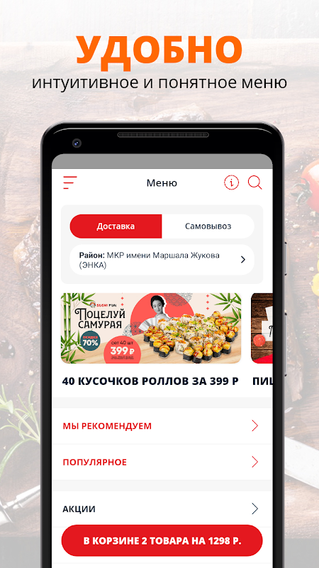 SushiFun-app | Krasnodar is een handige manier om eten thuis of op kantoor te bestellen! We bereiden onze gerechten met verse ingrediënten van hoge kwaliteit en bezorgen voedsel snel en zorgvuldig in heel Krasnodar.