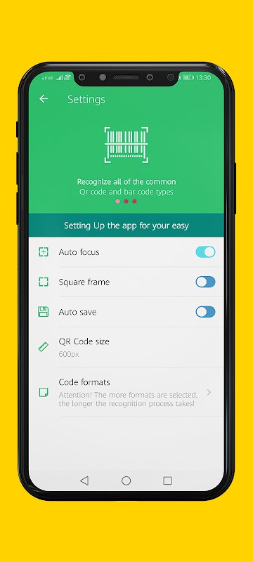 QR code reader and barcode scanner supports all standard 1D and 2D code types. Support formats like QR, Data Matrix, Aztec, UPC, EAN, Code 39, etc. Using this QR reader and barcode scanner to scan any format of QR code is an easy thing.