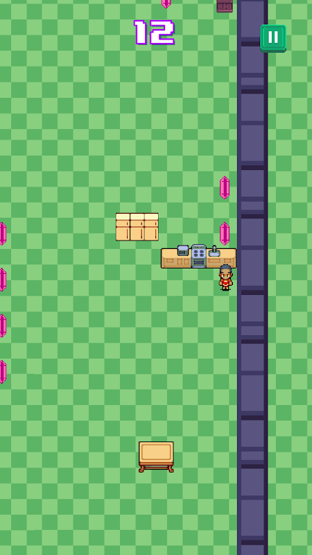 Een snelle pixel-art stijl gratis mobiele game. Veeg naar stoot. Verzamel kristallen.