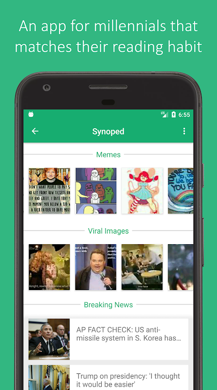 Wanna catch up with the world millennials way? Get an instant update on most popular memes, most popular images and gifs of the moment and best of all, instant News. We care about your busy schedule, so only 60 contents per category.