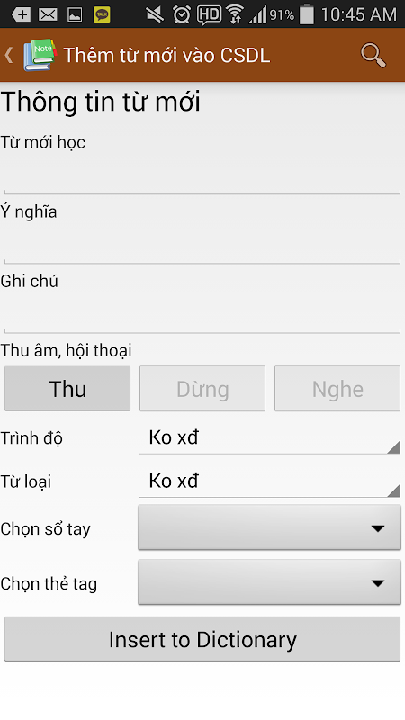 Sổ tay từ điển tiếng Hàn Quốc "Korean Dictionary Note" của YPWORKS là ứng dụng trên android giúp bạn tăng cường vốn từ vựng. Bạn có thể tra cứu từ điển tiếng Hàn Quốc online, sau đó lưu trữ trong máy để học tập lại hiệu quả. Bạn có thể dễ dàng quản lý các mục đã tra cứu bằng bộ lọc của chương trình. Ngoài ra, bạn có thể thu âm giọng nói của mình về phát âm của từ mới hoặc bài hội thoại nào đó.