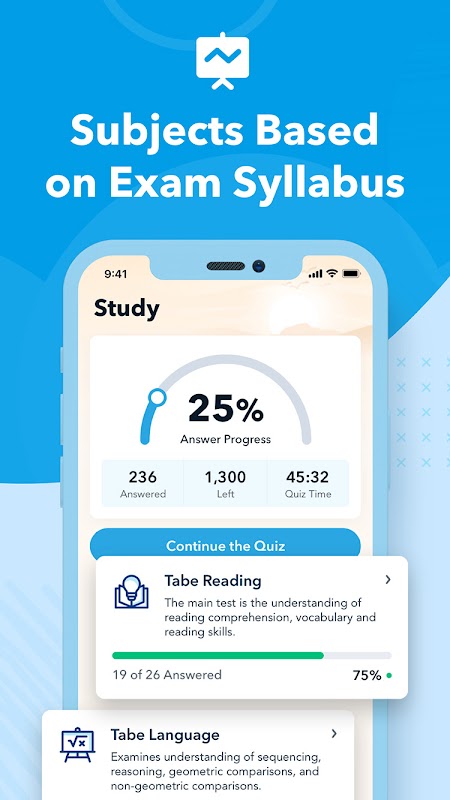 Onze applicatie helpt u bij de voorbereiding op de TABE-test met de vereiste domeinkennis. De details vindt u hieronder: