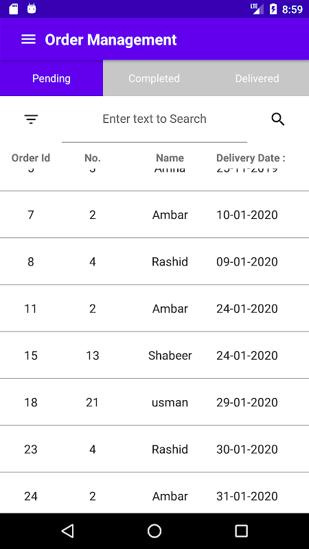 Tailor App also provide Order State Management which are (Pending, Completed, Delivered)