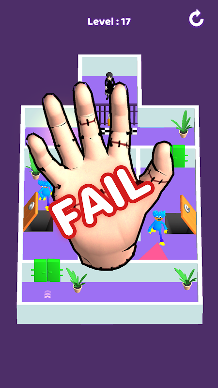 Jij bent een hand. Ontwijk de bewakers en red het meisje!