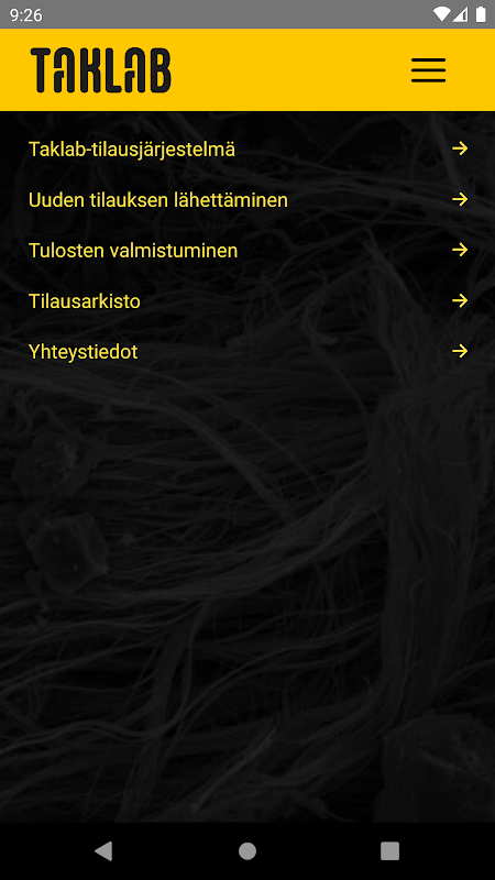Tervetuloa käyttämään TAKLAB-tilausjärjestelmän mobiiliversiota! Voit luoda TAKLAB-yritystilin rekisteröitymällä TAKLAB-järjestelmään verkkoselaimessa osoitteessa https://app.asbestilaboratorio.fi/signup.