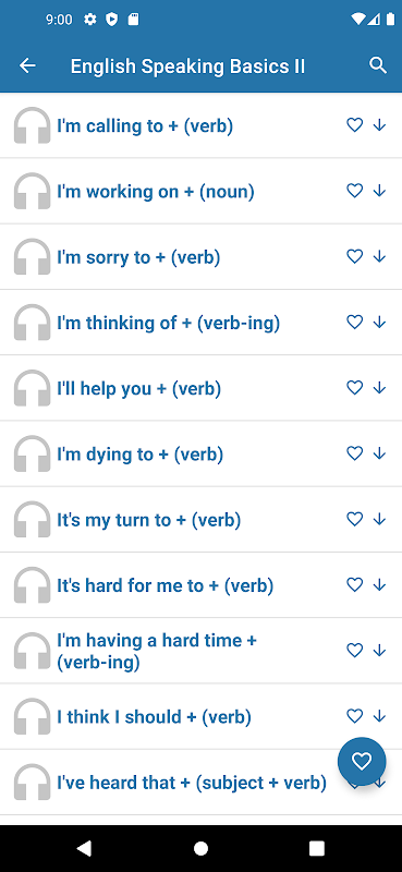 Talk English: Listening & Speaking is een gratis applicatie om Engels te luisteren en te spreken. Praat Engels: luisteren en spreken erg handig bij het oefenen van dagelijkse gesprekken. Talk English: Listening & Speaking bevat de lijst met de meest voorkomende woorden en zinnen die in dagelijkse gesprekken worden gebruikt. Het zal je helpen Engels te spreken.
