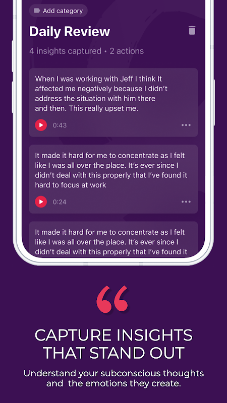 Talk It Out brengt je dieper en helpt je je onderbewuste gedachten en de emoties die ze veroorzaken te begrijpen. Met dit bewustzijn ben je beter toegerust om ermee om te gaan.