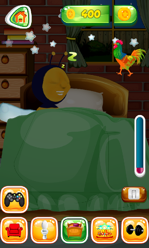De bij leidt een indrukwekkend leven op de boerderij. Hij geeft ook veel om hun uiterlijk, dus onze held gaat regelmatig naar de sportschool om te sporten. Het is de meest natuurlijke zaak voor de pratende bij om regelmatig te oefenen en in vorm te blijven. De loopband is waar hij de voorkeur aan geeft, en hij kan erop rennen of lopen, het is jouw keuze. Hij woont op de boerderij waar alles magisch is. Je kunt dus op het aquarium in de woonkamer tikken om de vissen eruit te zien komen, en op de la om een schattig kuiken te zien. Je schattige maatje weet piano en balafoon te spelen, een houten xylofoon. Luister naar je schattige held tijdens zijn optreden en je zult versteld staan. De pratende bij heeft een prachtig ingerichte slaapkamer, alles moet perfect zijn als hij moet rusten. De haan kan hem wakker maken als je denkt dat hij voldoende heeft geslapen. De bij is altijd in gesprek, dus praat met hem en hij zal heel goed luisteren. Later zal hij uw woorden kunnen herhalen. Er is ook een badkamer in zijn geweldige huis. Hij kan zijn tanden poetsen, een bad nemen en later zal hij de handdoek afvegen. Speel topminigames en help je vriend munten te verzamelen om alle kamers te ontgrendelen. In Jumpy Bee spring je samen op eindeloze platforms, de kwaadaardige beestjes proberen een heerlijke maaltijd te stelen! Je moet dit voedsel beschermen door vervelende insecten zoals de spin en de rups te vernietigen, maar pas op dat je geen vlinders en lieveheersbeestjes raakt, want dat zijn je vrienden. Speel Bee Smash en sla het dier met een hamer zodra je hem uit de put ziet komen. Wees snel! In Bee Jump tik je gewoon op het platform waarop je wilt dat je held springt. Veel plezier met dit huisdier op de speelplaats, hij kan heel goed sporten. Ook is er buiten een trampoline waar de bij kan springen. Jij en je held vormen een geweldig team en het wordt snel je favoriete applicatie. Aarzel dus niet om het populaire pratende huisdierenspel gratis te installeren.