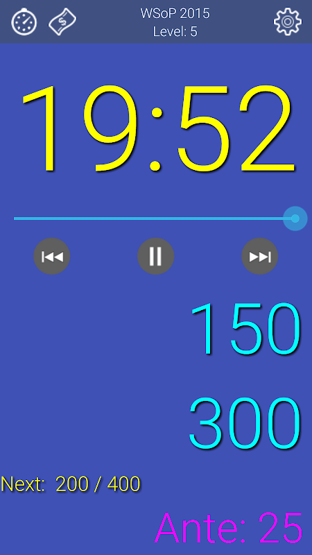 Praten Poker Timer is een nieuwe Texas Hold Em Klok, dus het duurt voordelen van grote schermen op tablets. De GUI op deze poker timer is ontworpen met grote teksten om de zichtbaarheid te verbeteren.
