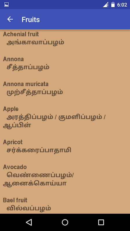 * vegetables, animals, fruits etc... in tamil.