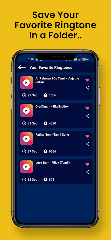 📌 Belangrijkste kenmerken Tamil Ringtones-app: