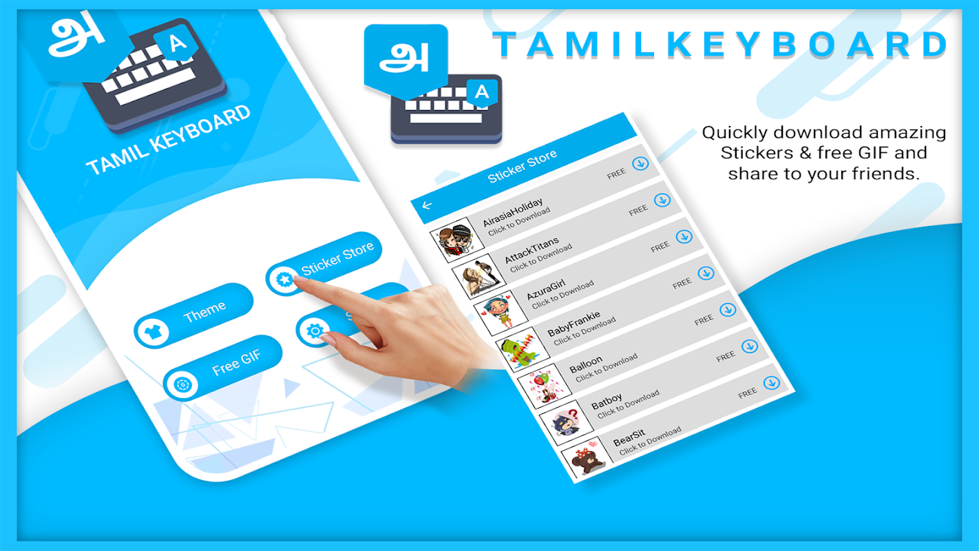 Toetsenbord is een eenvoudig toetsenbord met een Engelse lettertoetsenbordindeling met verschillende Tamil-toetsenbordthema's.
