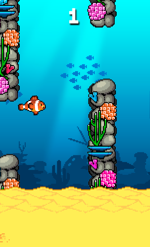 Keywords: tap, fish, pixel, easy, flappy, bird, ocean, crab, octopus, obstacles, swim, casual, fun, share, friends, score, medal, 8 bit, invite.