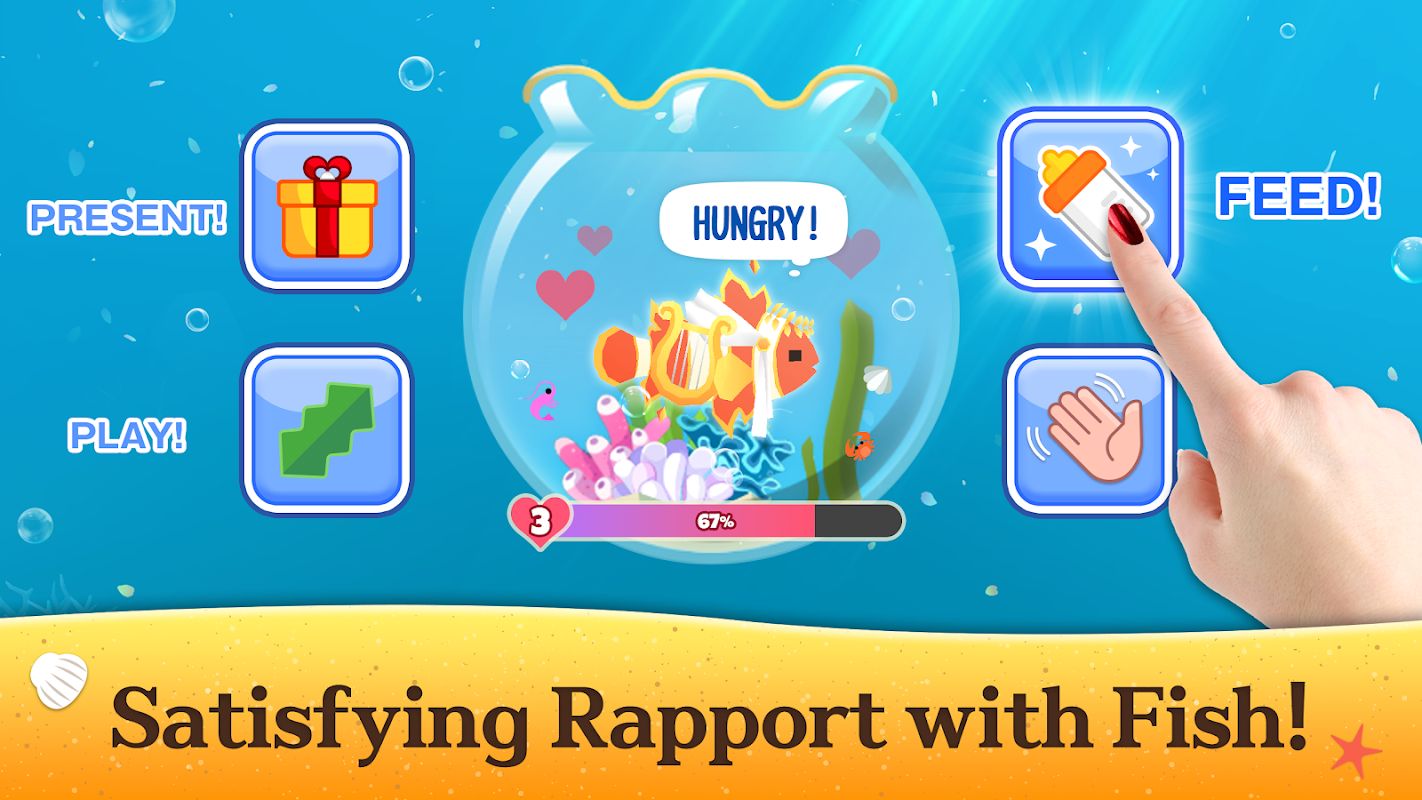 Groeiend aquarium: Aquarium zal snel uitbreiden en in een mum van tijd een niveau hoger komen te staan. Het enige wat u hoeft te doen is tikken, inactief.