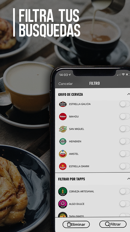 Tappear is een nieuwe applicatie waarmee we de beste plaatsen kunnen vinden om "iets te nemen". We zeggen "neem iets" omdat we ons specialiseren in al die plaatsen waar we een biertje, een wijntje, een drankje kunnen drinken en het kunnen begeleiden met geweldige tapas, rantsoenen of wat we maar willen. In tegenstelling tot onze oude app gewijd aan gratis tapas, vindt u in de nieuwe app allerlei voorstellen voor tapas: gratis tapa, tapa de pago, tapa dulce en vele andere dingen.
