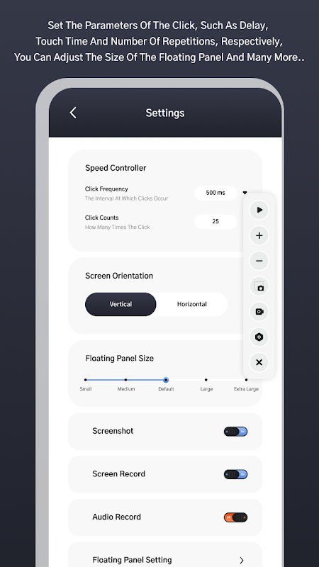 👉 Een aanpasbare zwevende paneelinstellingen die eenvoudig aan te passen zijn voor automatische clicker.
