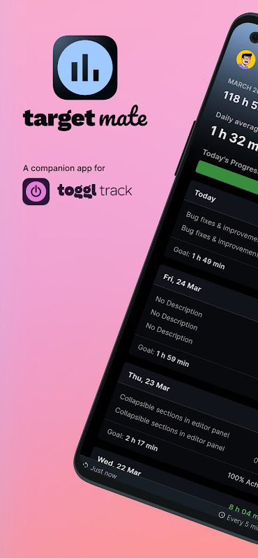 Companion-app voor Toggl-track om werkuren te beheren om maandelijkse doelen te bereiken.