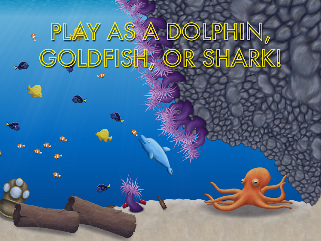 In aanvulling op de goudvis, kunt u ook spelen als een hongerige dolfijn en een vraatzuchtige haai. De dolfijn begint als een overwerkte aquarium ster, gedwongen om te springen door vlammende hoepels voor voedsel. Hij ontsnapt uit gevangenschap door het eten zich een weg door het aquarium en het nemen van wraak op zijn trainer. De haai is de laatste speelbaar personage, een kunstmatige vis gemaakt door wetenschappers om de aardse oceanen te redden. Het maakt gebruik van zelfreplicerende nano-technologie om alles op zijn pad te consumeren en zetten hun zaak in zijn eigen land. Er is niet te zeggen hoe groot deze haai krijgt.
