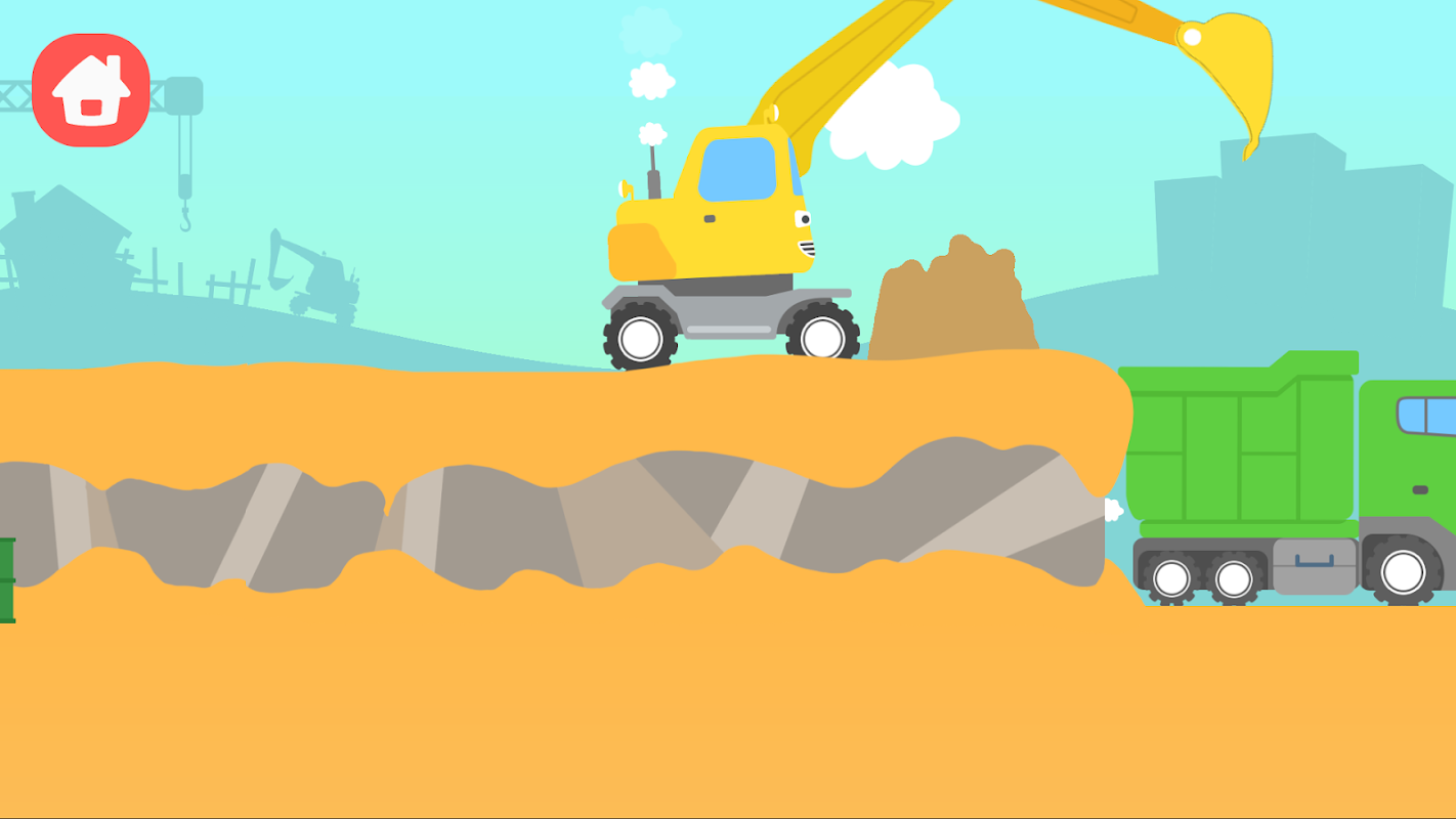 Max, Poco, Chris en Billy werken hard om een gebouw te bouwen! Graaf de grond en transporteer cement met vrienden van zware voertuigen om huizen en gebouwen met verschillende vormen te bouwen.