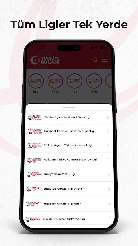 Wedstrijden, standen en statistieken voor de Turkse Verzekeringsbasketbal Super League, de Halkbank Damesbasketbal Super League, de Turkse Verzekeringsbasketbalcompetitie, de Halkbank Turkse Damesbasketbalcompetitie, de Turkse Basketbal 2e Liga, de Basketbal Jeugdcompetitie, de regionale basketbalcompetities voor mannen en vrouwen, evenals lokale en jeugdcompetities, kunnen ook via de app worden gevolgd.