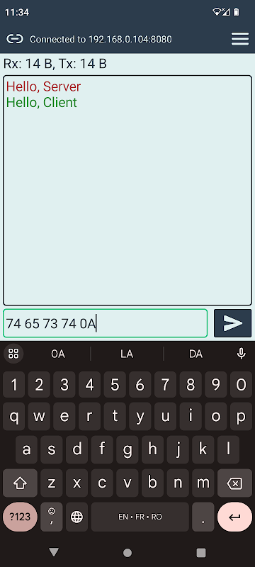Verzend en ontvang tekst- of hexadecimale gegevens.