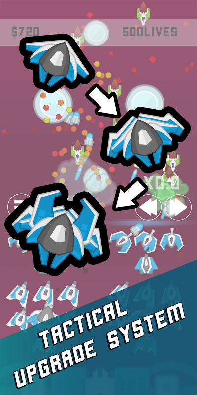- PvP offline systeem: nodig je vriend en een ander uit voor een botsing van ruimteoorlog op je telefoon! Voel je vrij om een defensieve of offensieve formatie te maken en daag elkaar uit om het te verslaan!