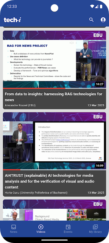 tech-i is beschikbaar voor EBU-leden en andere geïnteresseerden. Vanaf versie 1.4.0 zijn de video's die je ziet afhankelijk van je lidmaatschap en de evenementen waaraan je hebt deelgenomen.