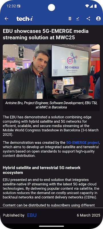 De tech-i-app wordt aangeboden door de European Broadcasting Union (EBU) en helpt je de laatste ontwikkelingen op het gebied van mediatechnologie te volgen.