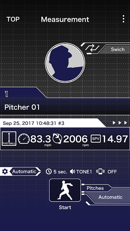 De TechnicalPitch kan meerdere pitchers met één account registreren en de respectieve records van elke werper beheren.