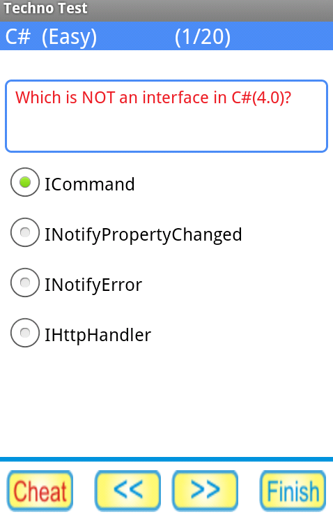 Het is een handige applicatie in uw zak waarin een scherpe vele interview vragen in C #, ASP.net, WCF, WPF, SQL Server, geeft Java, C ++, testen en nog veel meer worden toegevoegd in Microsoft, Java en andere categorieën.