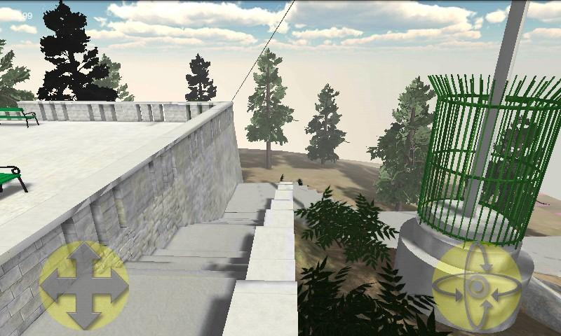 The left pad is used to move the character, and the right to rotate. A quick double-tap on the right joystick will make the character jump. Back button for exit.