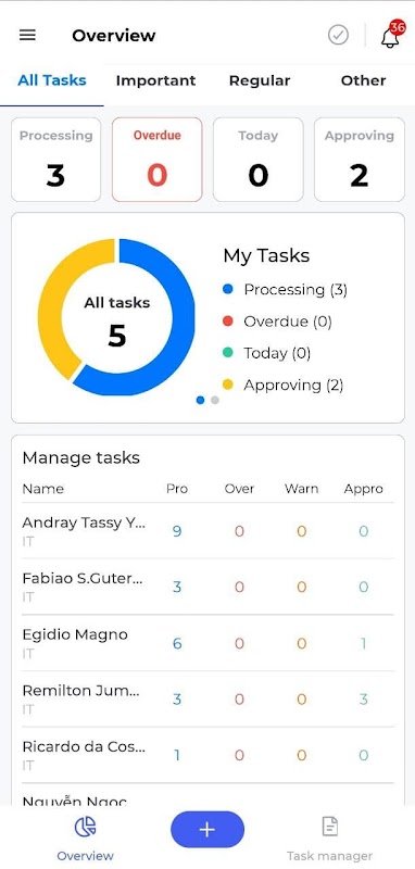 Aanvraag voor alle medewerkers van telemor gebruik en manager hun taak.