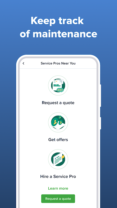 - Beheer alle onderhoudsverzoeken in de app, stel uw planning op en houd al het uitgevoerde werk bij.