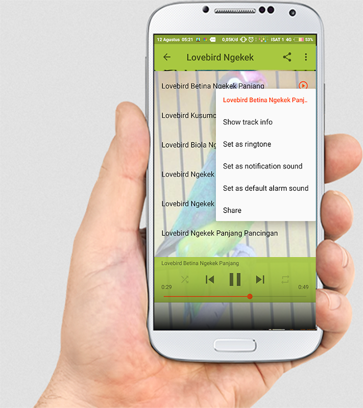 Aplikasi ini bisa digunakan sebagai pancingan untuk memasterkan burung lovebird anda.