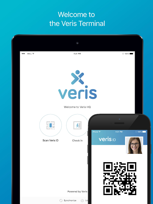 Tijdens een bezoek aan de organisatie kan de gebruiker Veris User App gebruiken om te communiceren met Veris Terminal, dit: