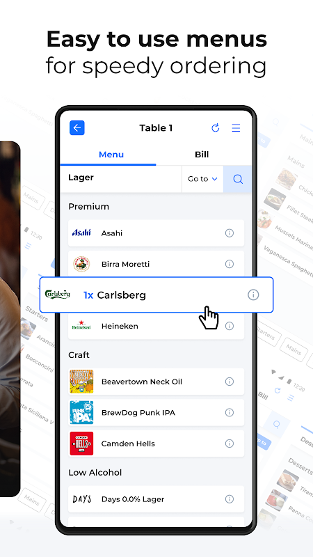 Neem bestellingen op in een paar tikken en stuur ze rechtstreeks naar de keuken. Geen fouten meer op gekrabbelde notities of heen en weer rennen naar de kassa. Artikelafbeeldingen maken navigatie veel gemakkelijker en artikelen kunnen met een enkele klik aan een bestelling worden toegevoegd. Een duidelijke en intuïtieve interface maakt het zo gemakkelijk dat nieuw personeel minimale training nodig heeft.