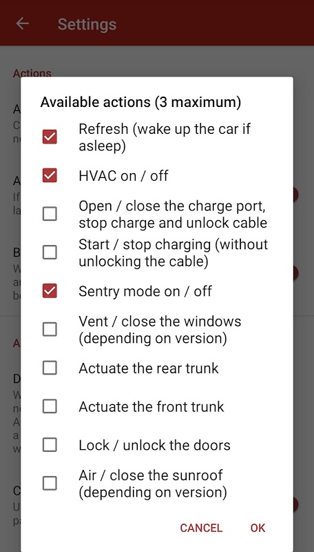Het biedt ook enkele snelkoppelingen, zoals het voorverwarmen van de auto, het inschakelen van HVAC, het snel ontgrendelen van de oplaadpoort, het beheren van de Sentry-modus. Bovendien zijn de acties aanpasbaar en kunt u uw snelkoppelingen kiezen! U kunt ook snelkoppelingen voor deze acties maken en ze op uw hoofdscherm plaatsen.
