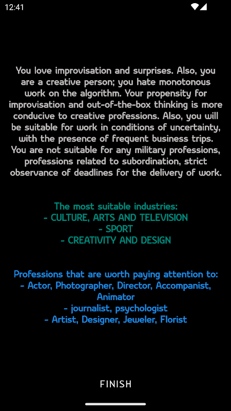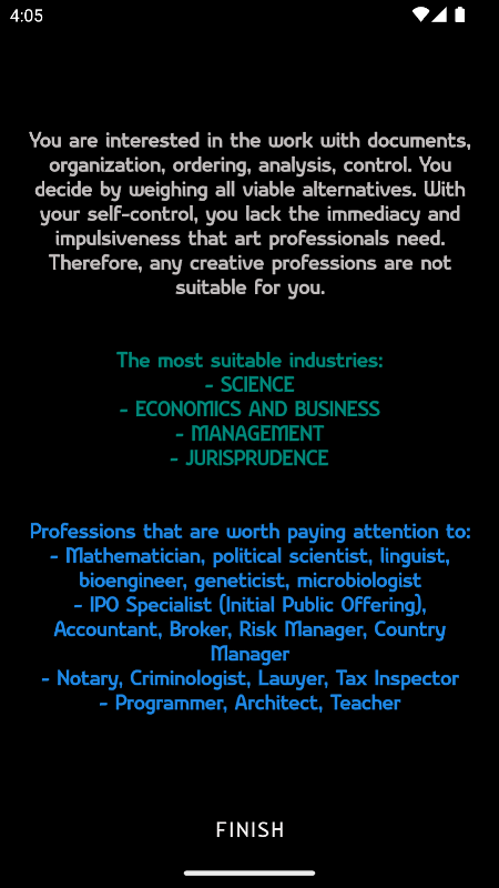 De test toont de meest geschikte industrieën en beroepen op basis van uw interesses en voorkeuren.