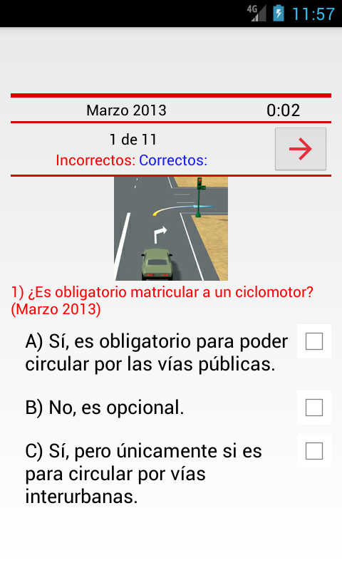 Test voor het bereiden van het theoretisch rijexamen auto (Type B) DGT.