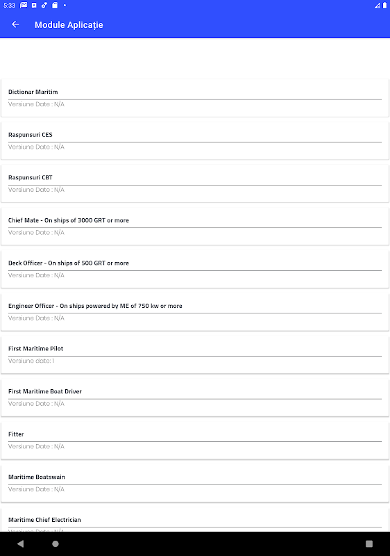Met de app kunt u alle vragensets downloaden waaruit de examens bestaan die worden afgenomen om patenten en certificaten van bekwaamheid te verkrijgen binnen de Constanta National Academy of Sciences.