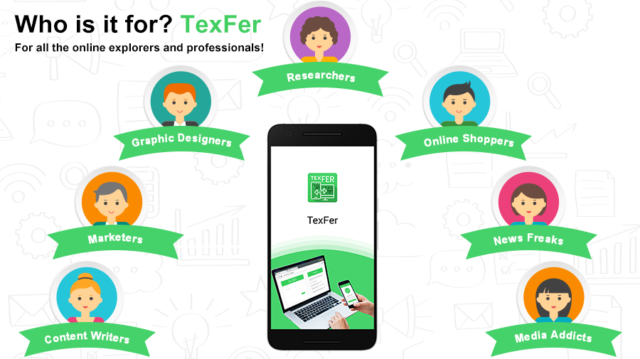 Contentschrijvers moeten een cluster van tekst en afbeeldingen beheren. Ze blijven schrijven, ongeacht welk platform dan ook. Het overbrengen van die inhoud en dat beeld is een lastige klus. Dus nu gewoon TexFer it! Met slechts één klik zet u tekst over van mobiel naar pc of omgekeerd!