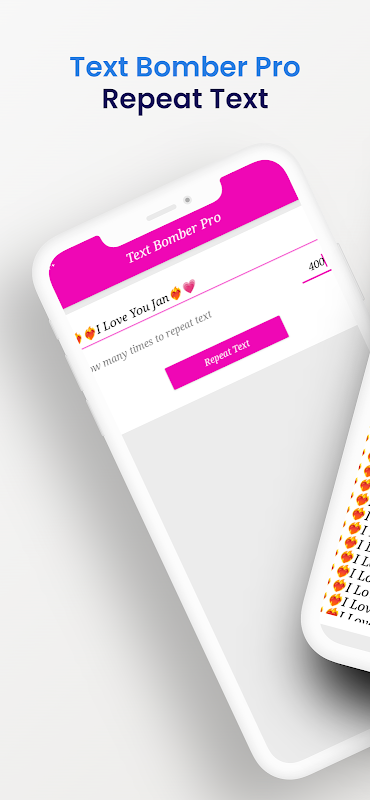 š±Text Bomber Pro-app is ontworpen om uw berichtenuitwisseling en productiviteit te verbeteren. U kunt uw woorden, zinnen of zinnen 9999 keer dupliceren en vermenigvuldigen met slechts een paar tikken. Of u nu een punt wilt benadrukken, pakkende slogans of zinsneden wilt maken. U kunt een unieke tekst voor uw berichten maken en plezier hebben met uw vrienden. Deze Text Bomber Pro is leuker voor jonge jongens en meisjes die altijd teksten schrijven door sms'jes te herhalen. U hoeft niet langer te schrijven omdat onze Text Bomber Pro 9999 keer herhaalde sms-berichten biedt. Hier zijn enkele voordelen van de Text Bomber Pro-app.