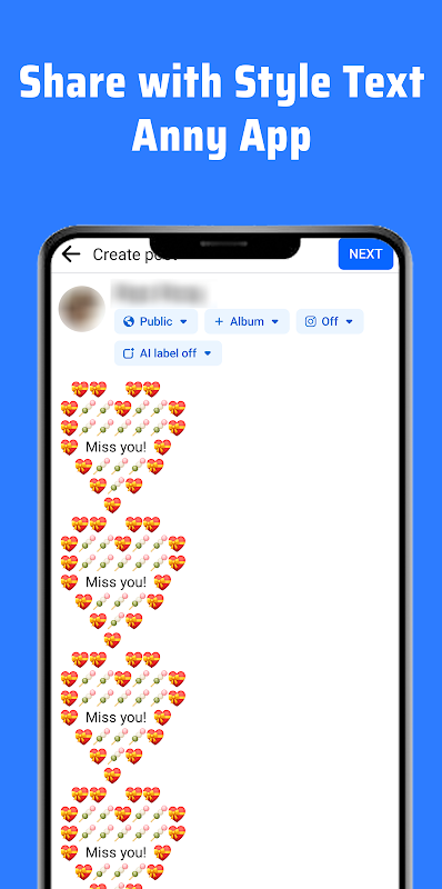 Het delen van dubbele tekst via berichtenapps en sociale-communicatieplatforms is moeiteloos met Text Repeater. Eenmaal gegenereerd, kunt u de herhaalde tekst eenvoudig rechtstreeks vanuit de app delen met uw favoriete sociale netwerken of berichten-apps. Of u nu de nadruk legt op een boodschap, boeiende inhoud maakt of experimenten uitvoert, onze app stroomlijnt het proces, waardoor u gedupliceerde tekst naadloos kunt integreren in uw digitale gesprekken en het maken van inhoud.
