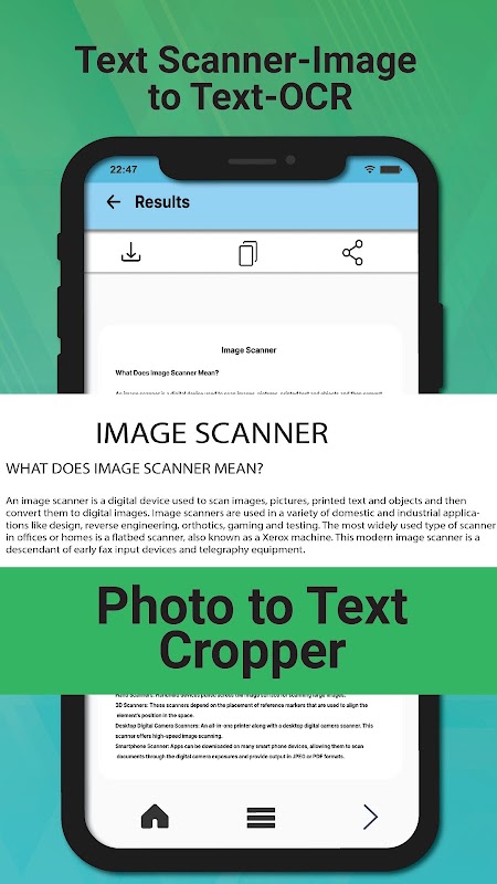 De Image to Text-app met zijn geavanceerde technologie kan de tekens in uw afbeelding nauwkeurig herkennen en omzetten in tekst. Extraheer de tekst uit een afbeelding, kopieer de geconverteerde informatie naar uw klembord en geniet van het naadloos delen van de geëxtraheerde tekst via WhatsApp, e-mail of een andere berichten-app met deze beeld-naar-tekst-scanner.