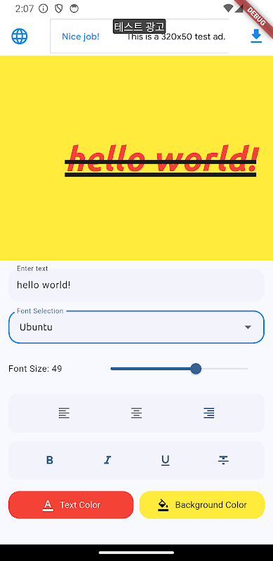Met deze app kun je elke gewenste tekst typen, zoals "Hallo wereld!", en er direct een voorbeeld van bekijken als afbeelding. Pas het lettertype, de grootte, kleur, achtergrond, vetgedrukte en cursieve tekst en meer aan. Of je nu een quote voor sociale media ontwerpt, een titelafbeelding voor een presentatie, of gewoon een stijlvolle visuele boodschap wilt, deze tool maakt het eenvoudig en snel.
