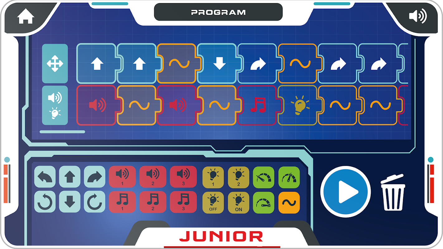 Jij bestuurt de bewegingen en geluiden van Juniors. Veel plezier en bestuur Junior met de afstandsbediening of door uw apparaat als gyroscoop te gebruiken. Codeer programma's voor Junior met behulp van een eenvoudige, visuele interface in de app.