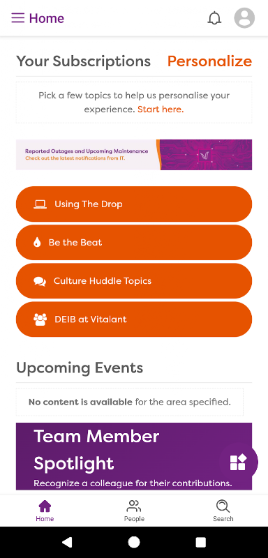 Maak contact met collega's, ontvang gepersonaliseerd nieuws op je mobiele homepage en houd links naar je meest benodigde content bij de hand. The Drop houdt je op de hoogte, waar je ook werkt.