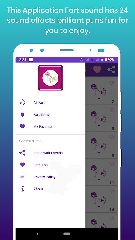 ► Deze applicatie scheetgeluid heeft 24 geluidseffecten, briljante woordspelingen waarvan je kunt genieten.