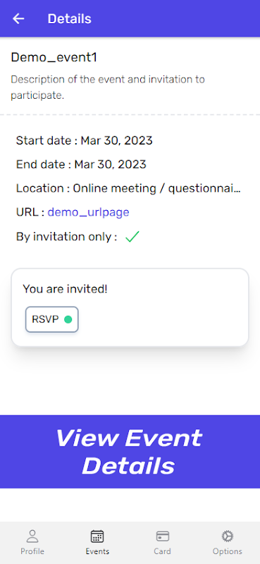 Elk lid heeft een unieke QR-codekaart. Ze hebben toegang tot hun eerdere en toekomstige evenementen, RSVP en ontvangen meldingen. Via de applicatie kan een manager toegang krijgen tot zijn evenementen en de unieke QR-code scannen, evenals toegang krijgen tot de RSVP-status en deze instellen.