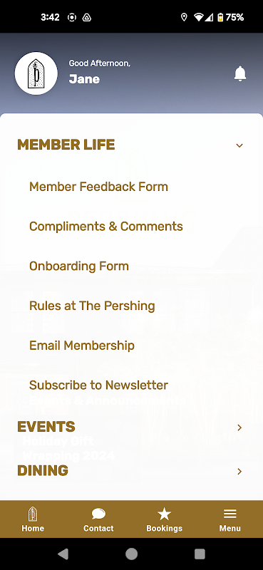 Welkom bij de The Pershing-app, waar de ervaring van onze leden onze primaire focus is. We hebben een app op maat ontwikkeld om uw ervaring op en buiten het terrein te verbeteren. Met slechts een paar tikken kunt u een digitale lidmaatschapskaart voor het personeel presenteren. Je hebt ook eenvoudig toegang tot gedetailleerde informatie over de club en prachtige foto's van onze evenementen en faciliteiten. Er zijn zelfs verschillende manieren om met ons te communiceren, waaronder het versturen van uw complimenten en opmerkingen, het aanvragen van een speciaal evenement en het opvragen van gastinformatie. We hopen dat je geniet van de digitale The Pershing-ervaring.